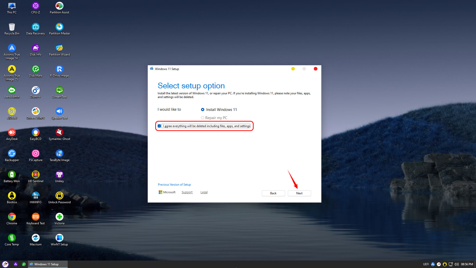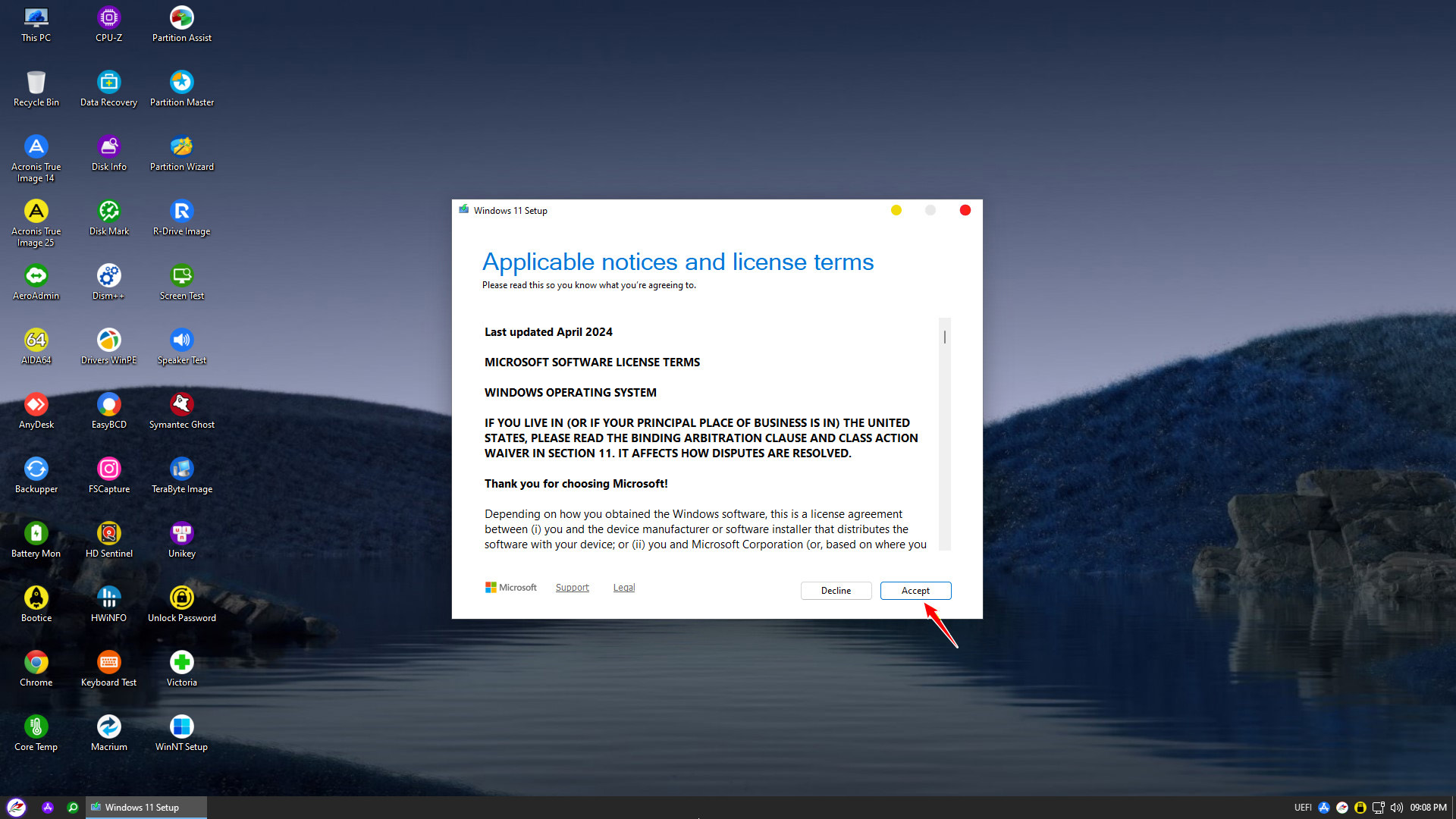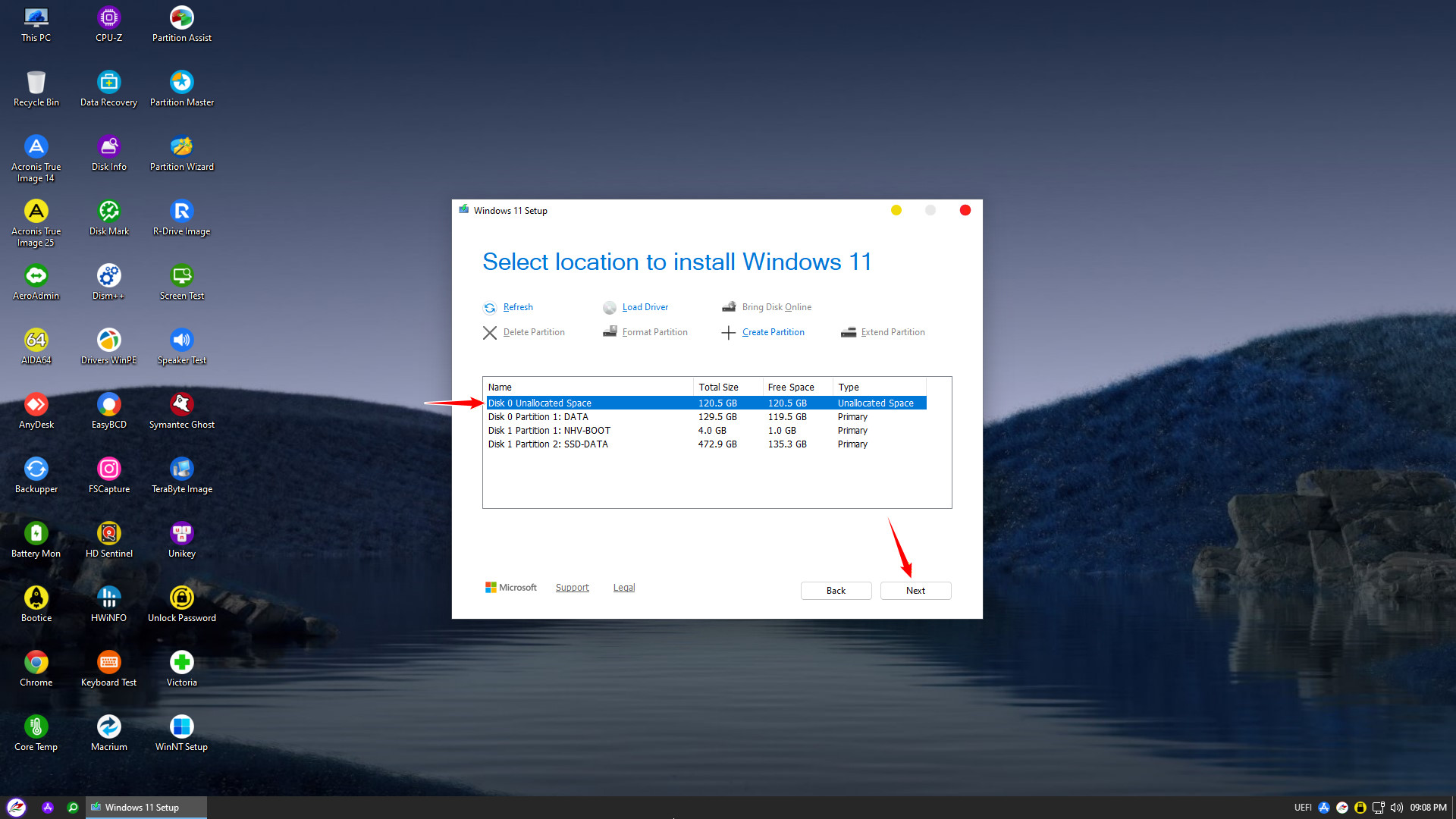 Important note: During the initial Windows setup, you should not connect to the network (unplug the LAN cable or skip WiFi) to make the installation process faster