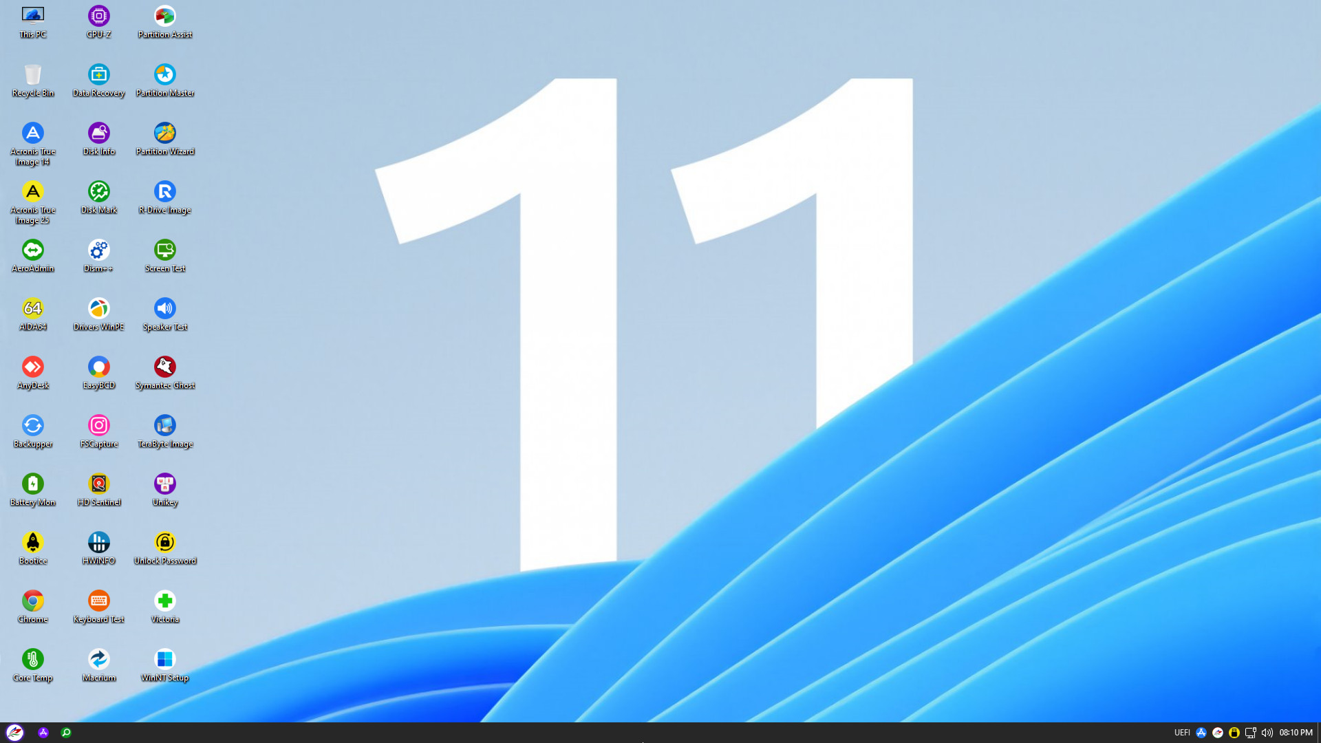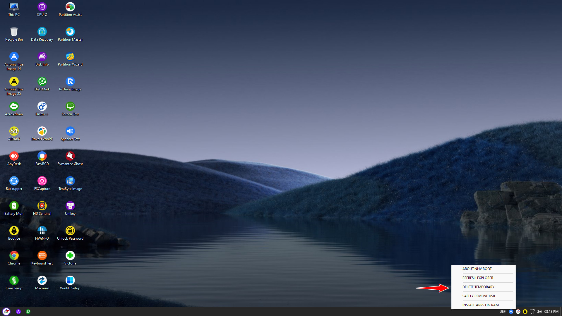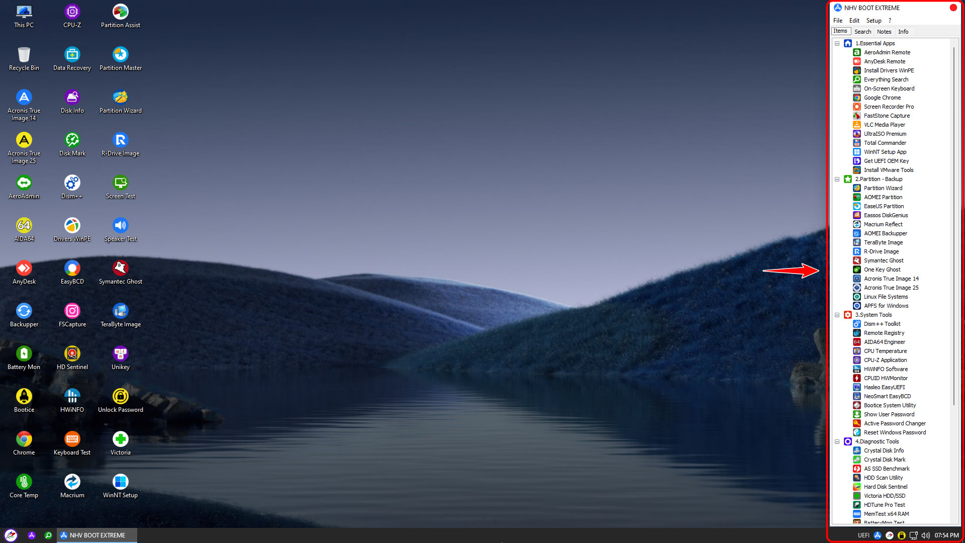By default, NHV BOOT pins popular applications to the Desktop for easy access However, to access the full rescue toolkit (Pstart Menu), quickly use the keyboard shortcut Windows + 1 or CTRL + SHIFT + A