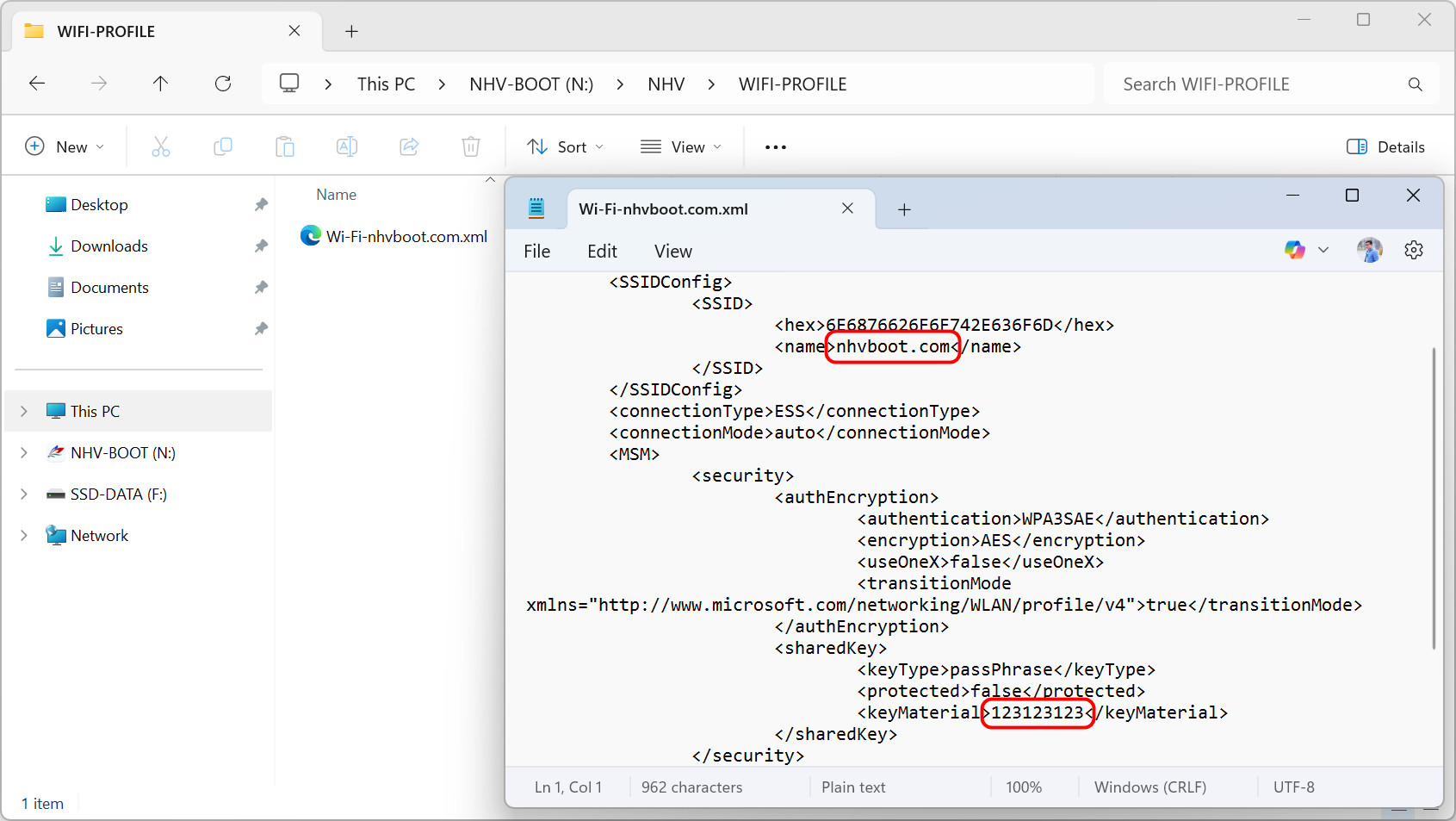 You can view the exported WiFi passwords in the WIFI-PROFILE folder by opening the .xml files with Notepad
